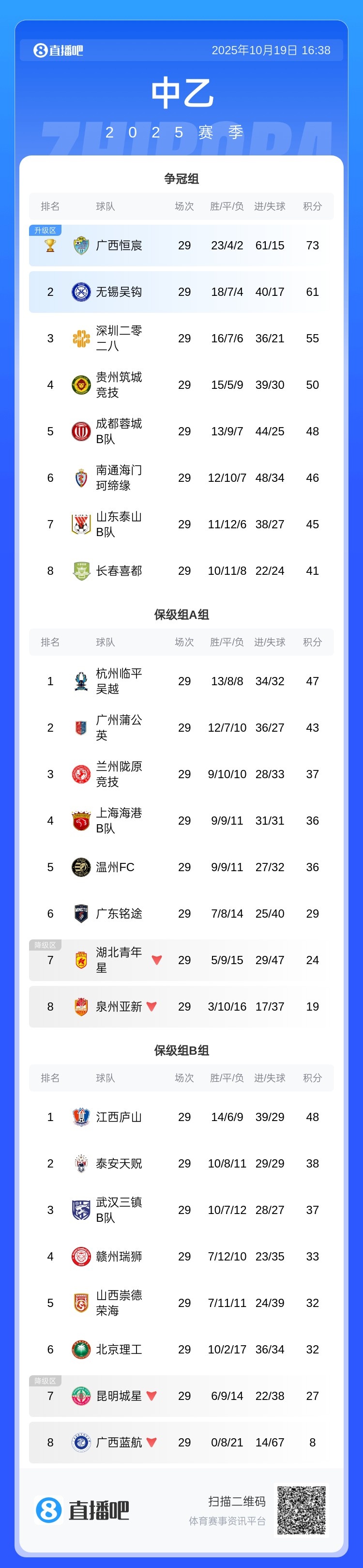当今,无锡吴钩18胜7平4负积61分,卓越第三名深圳二零二八6分,提前一轮锁定中乙冲甲组第二。