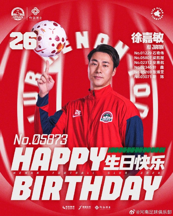 今天是河南俱乐部彩陶坊球员徐嘉敏(会员ID:No.05873)及6名官方会员的生日,让我们一同祝福他们生日快乐!