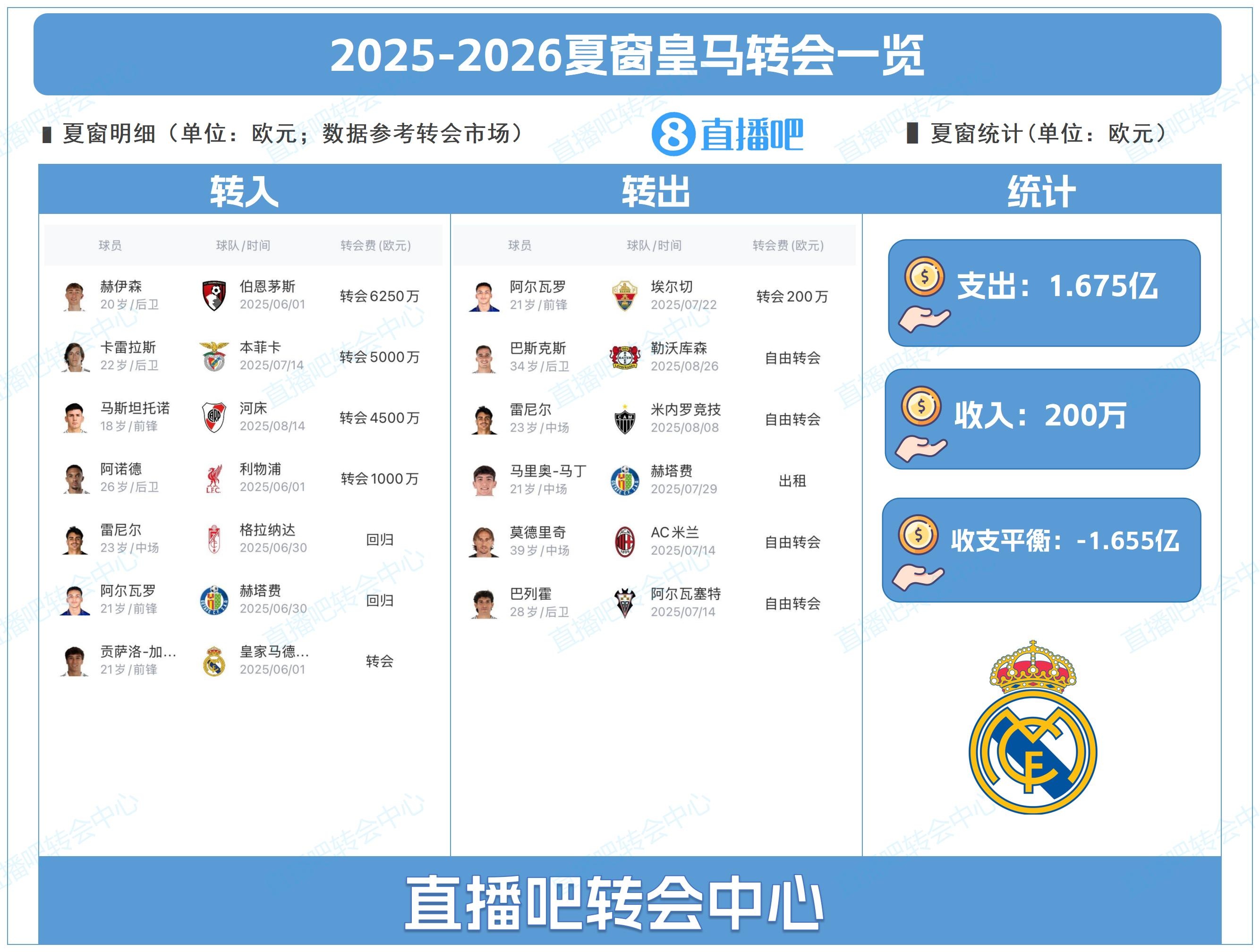 为吧友们回归了皇马今夏的转会操作,吧友们能打几分?