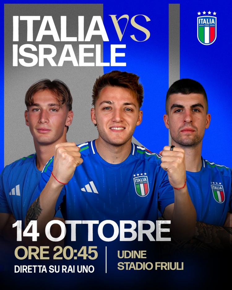 意大利队社媒发布了为此役制作的海报,小曼奇尼、雷特吉、皮奥-埃斯波西托出镜。