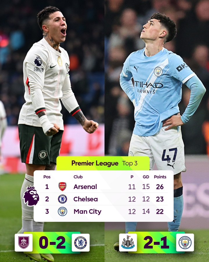 11月23日讯 英超第12轮多场战罢,切尔西赢球后反超输球的曼城升至英超第2。