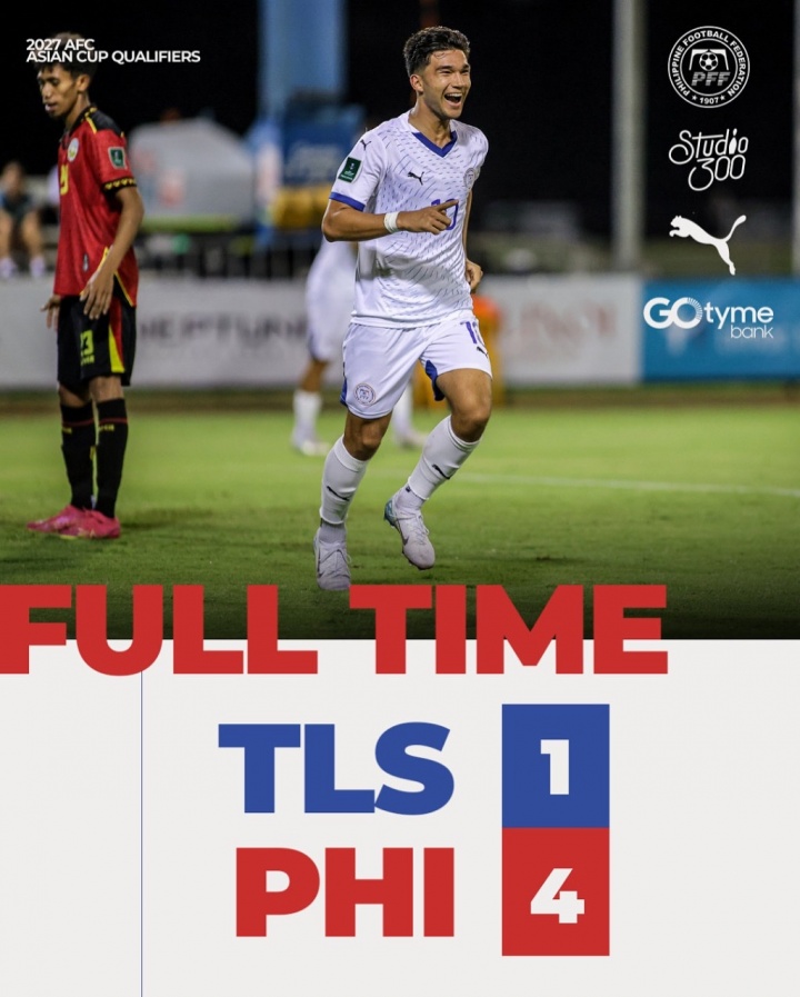 10月09日讯 在刚刚死心的一场亚洲杯预选赛中,菲律宾4-1完胜东帝汶,暂列小组第1。