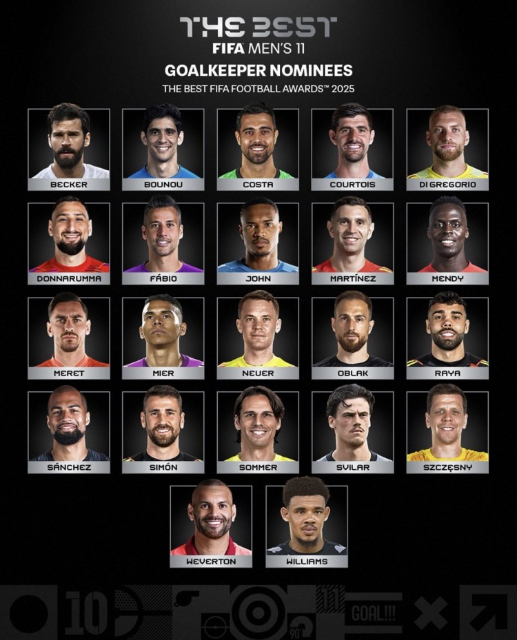 11月7日讯 FIFA官方公布了2025年最好气势门将位置的候选,库尔图瓦、多纳鲁马、阿利松、诺伊尔在列。
