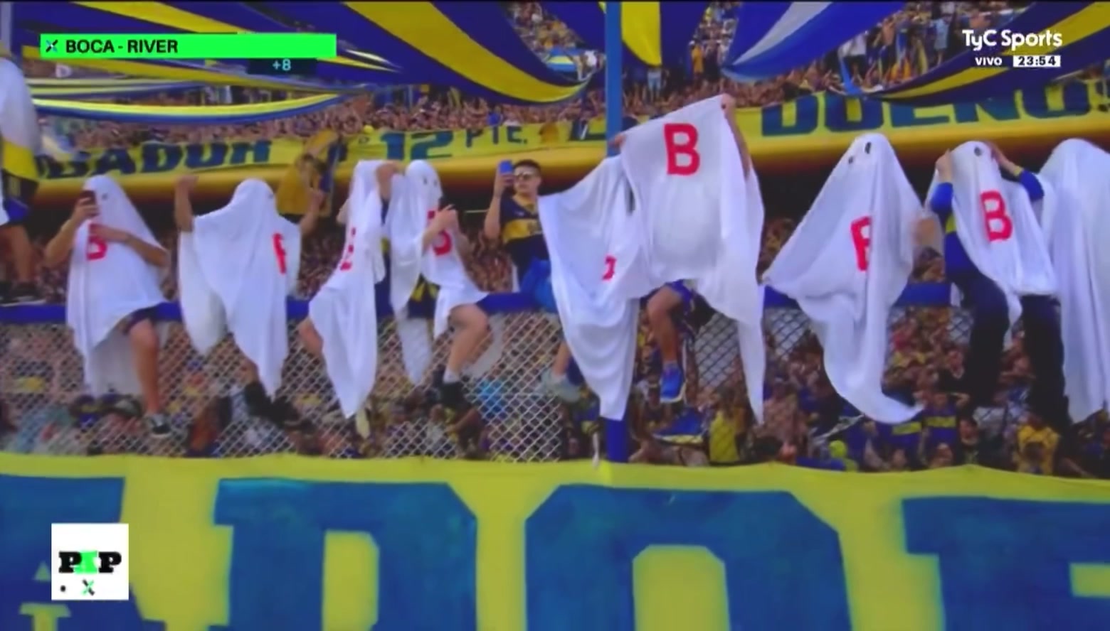 据阿根廷媒体TyC报谈,比赛中博卡球迷集体呐喊,嘲讽河床还是左迁的过往。