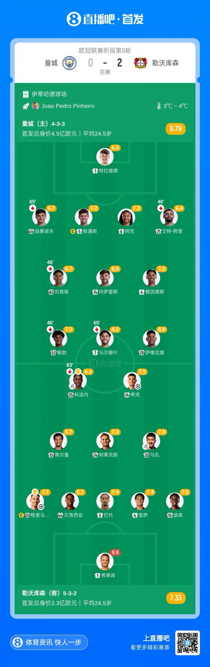 本场曼城大幅轮流出战,首发11东谈主中仅有冈萨雷斯是老例首发,其余10东谈主均为老例替补。