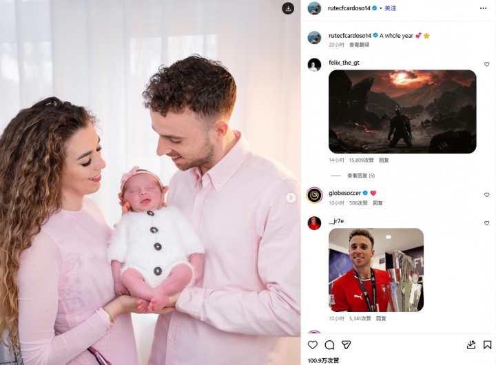 11月27日讯 昨日若塔的赤子子(第三个孩子)年满一岁,若塔遗孀在社媒发文,贴出多张图片缅念念儿子的生辰,其中包括三东谈主的合照,以及多张若塔生前关爱孩子的像片。