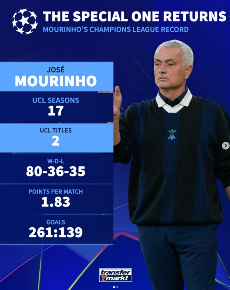 9月30日讯 本轮欧冠穆里尼奥将领导本菲卡重返斯坦福桥球场迎战切尔西,德转也清点了穆里尼奥握教糊口在欧冠的进展。