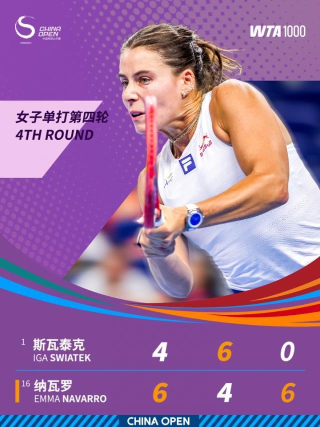 中网女单第四轮,16号种子纳瓦罗决胜盘送蛋,以6比4、4比6、6比0挑落头号种子、前赛会冠军斯瓦泰克,办事生活第三次打败天下前二,这亦然她第三次置身1000赛八强。