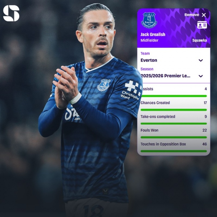 10月4日讯 据Squawka统计,格拉利什创造契机、助攻等数据本赛季英超居首。