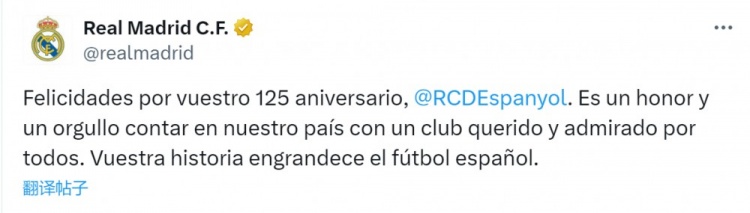 皇马官方社媒写谈:“祝愿西班经纪东谈主迎来开拓125周年记念日,能领有这么一家深受全民嗜好与敬仰的俱乐部,是咱们国度的侥幸与高傲,你们的听说历史为西班牙足球增添了光彩。”