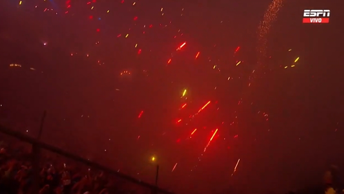 次回合,竞技队的主场氛围让全全国为之嘉赞。尽管本场比赛最终比分是0-0,可是总统庇隆球场超燃的画面,硝烟充足堪比斗争,能见度不及5m,极其摇荡。