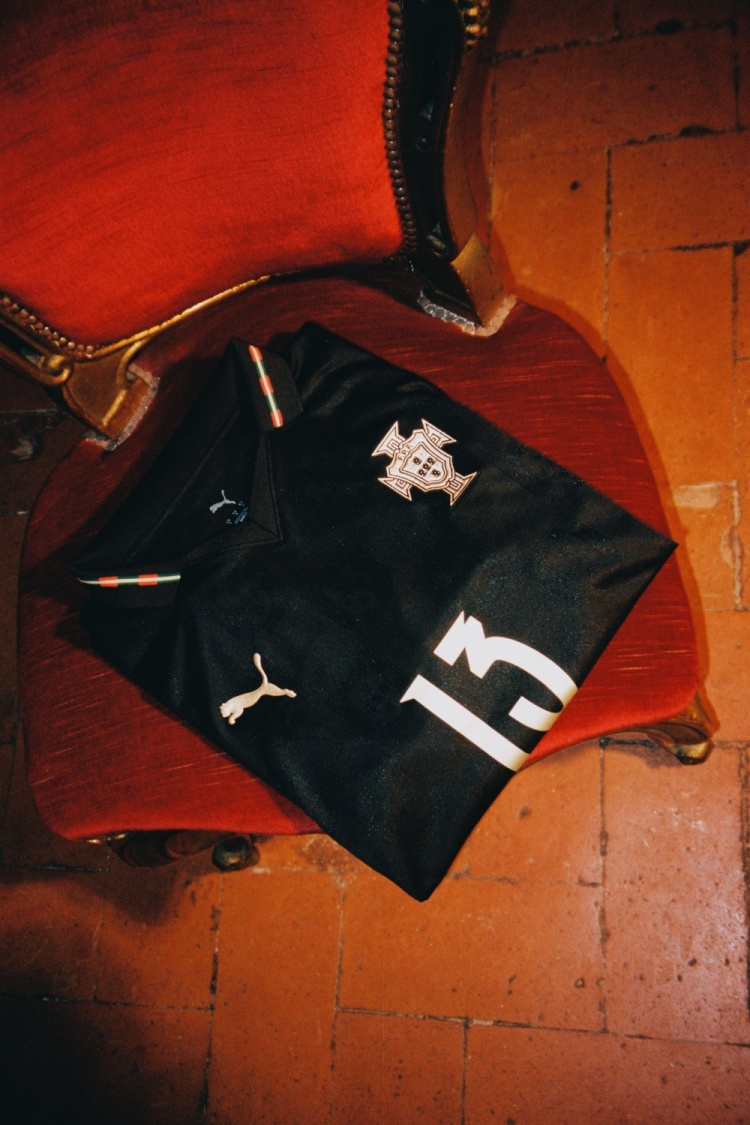 这套球衣由彪马野心坐蓐,球衣主体为玄色,衣袖和衣领处有葡萄牙国旗配色。