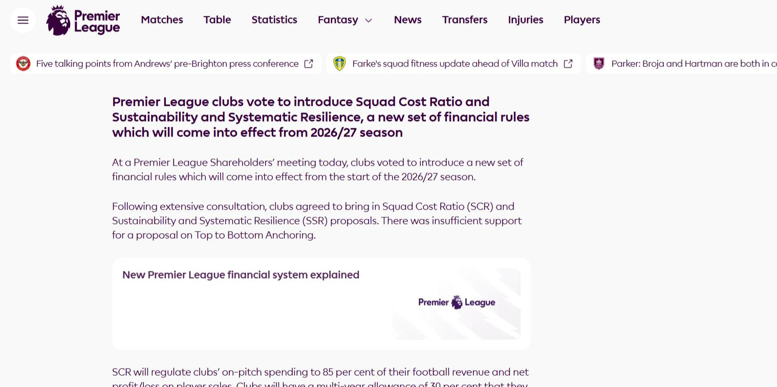 英超“费钱时期”剧变!新财务法例SCR/SSR详解,你的主队受影响吗?