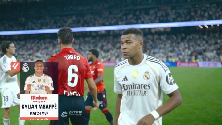 8月20日讯 2025-26赛季西甲首轮,皇马1-0驯服奥萨苏纳,得回开门红。本场比赛,造点+点射的姆巴佩当选全场最好。