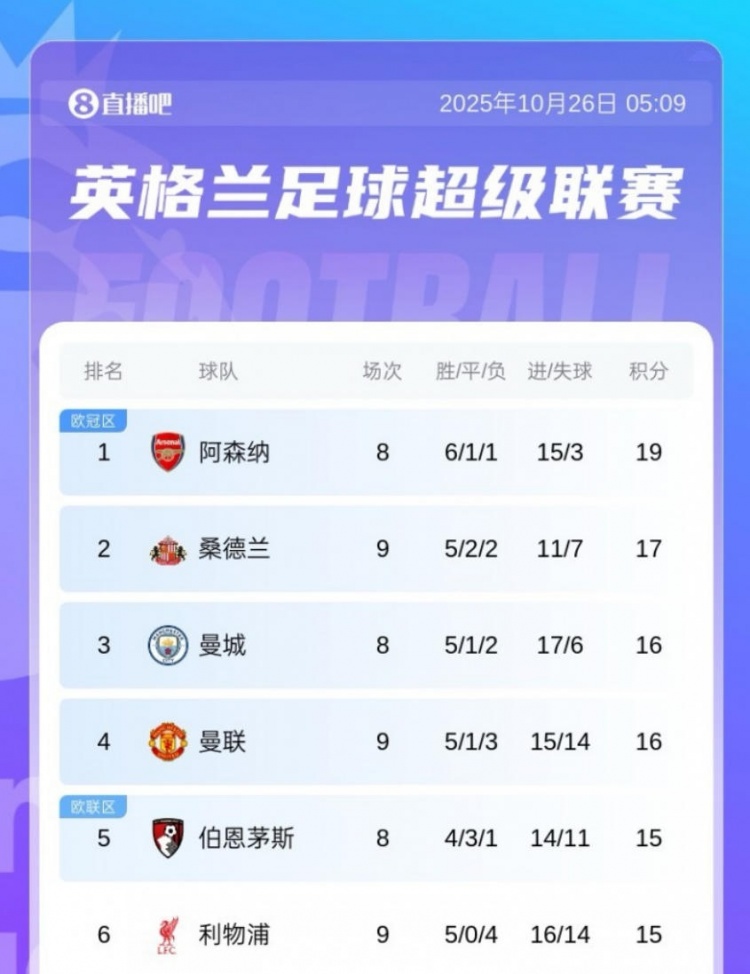 10月26日讯 2025-26赛季英超第9轮,利物浦2-3不敌布伦特福德,遭受联赛4连败。积分榜上,利物浦跌至第6位。