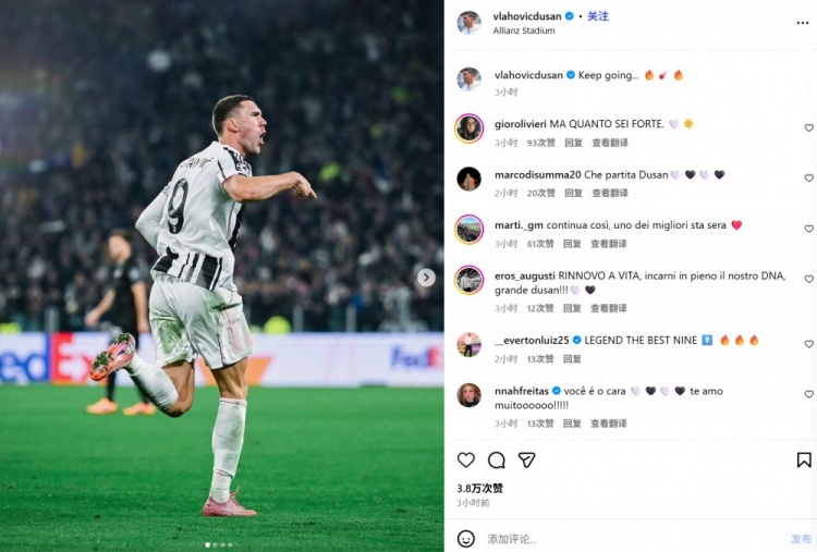 数据统计浮现,弗拉霍维奇本赛季4场欧冠也曾打进3球。他也在赛后通过社媒晒出我方的庆祝照,并配文:“不绝前进.. 🔥☄️🔥”