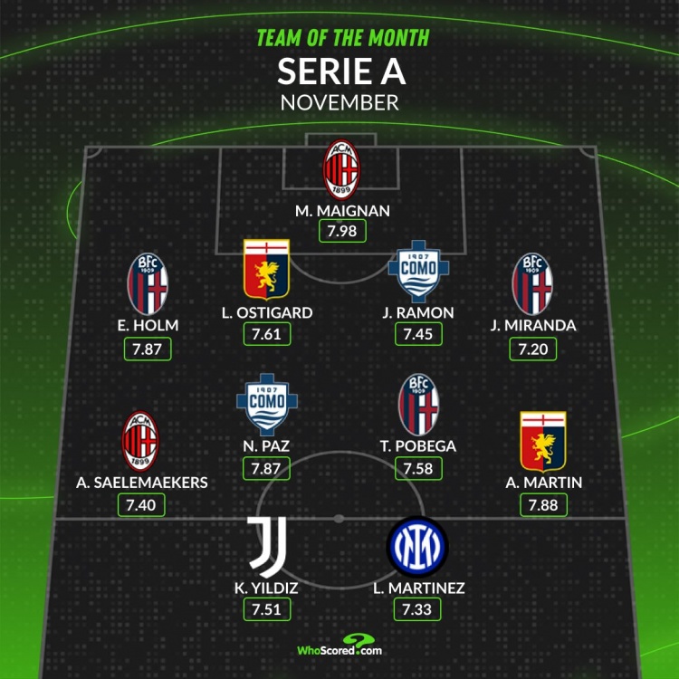 12月2日讯 WhoScored凭证球员的评分排出了意甲11月最好气势,伊尔迪兹、劳塔罗、帕斯在列。